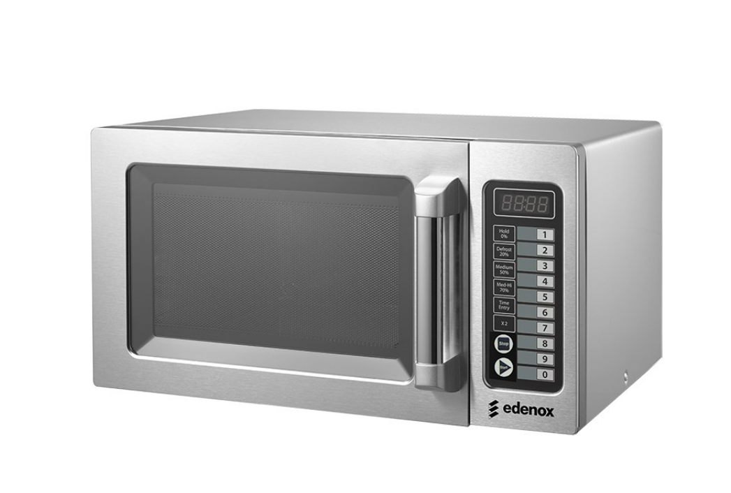 El microondas profesional EDENOX MICRO-1025 es un equipo diseñado específicamente para el uso intensivo en hostelería. A diferencia de los microondas domésticos, este modelo está fabricado con componentes preparados para ser utilizados cientos de veces al día, sin importar el tiempo de cocción o la potencia empleada.